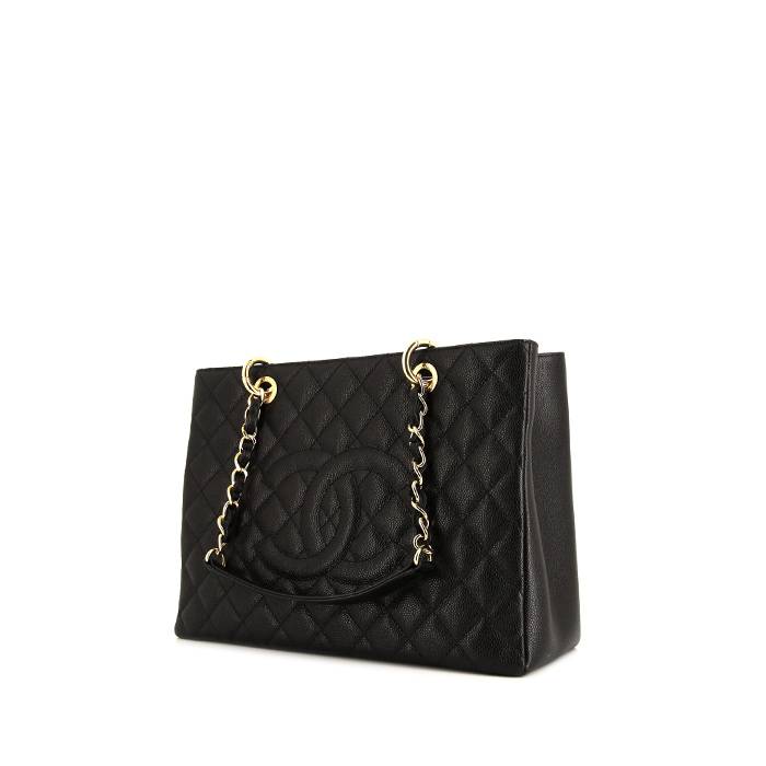 Bolso para llevar al hombro o en la mano Chanel Shopping GST modelo grande en cuero granulado acolchado negro Ref Collector Square: 37 64 63