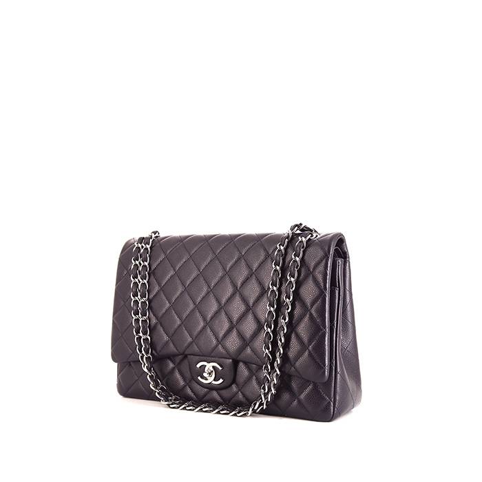 Bolso de mano Chanel Timeless Maxi Jumbo en cuero granulado acolchado azul marino Ref Collector Square: 35 81 77