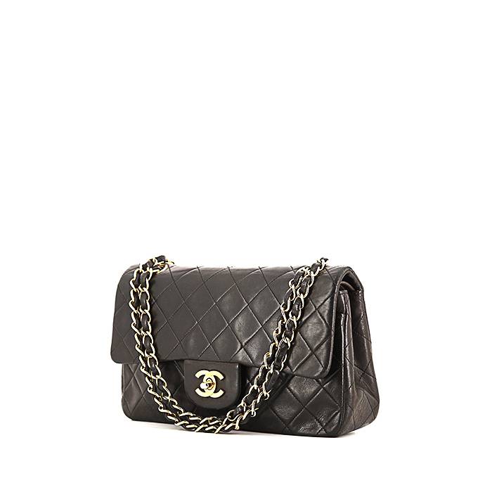 Delicioso bolso para llevar al hombro o en la mano Chanel Timeless de cuero acolchado marrón oscuro, adorno en metal dorado, asa en cadena ajustable de metal dorado entrelazada de cuero marrón para llevar en la mano o al hombro.
