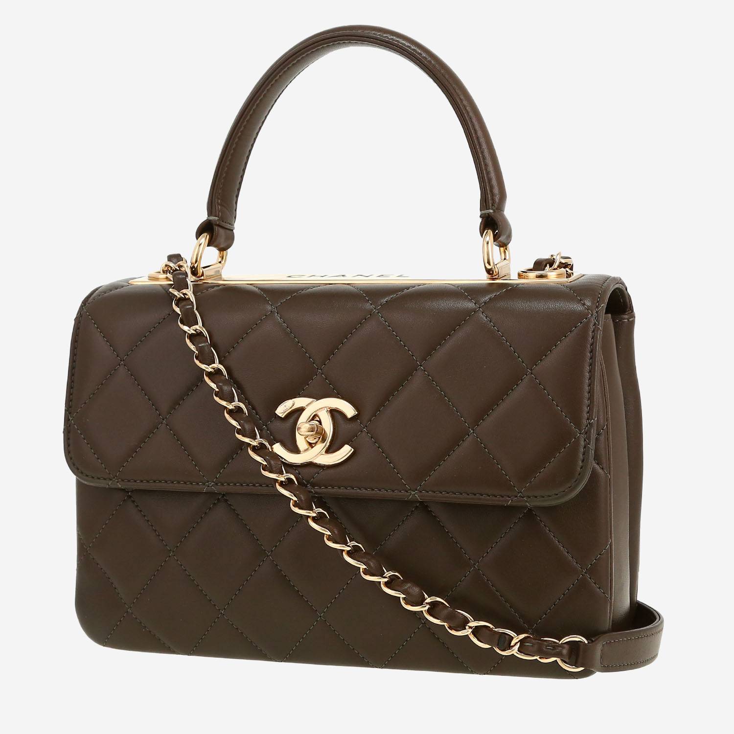 Encantador bolso bandolera Chanel Trendy CC de cuero acolchado marrón, adorno en metal dorado, asa sencilla de cuero marrón.