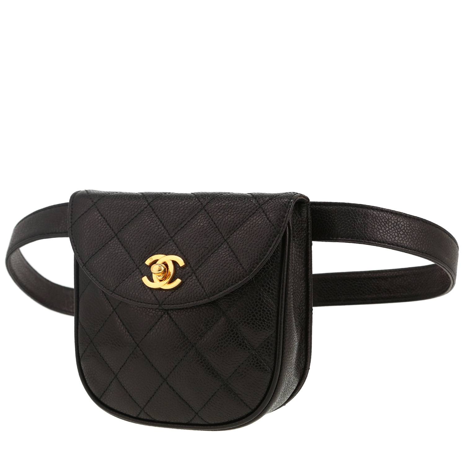 Bolsito-cinturón Chanel Vintage en cuero granulado acolchado negro Ref Collector Square: 41 78 12