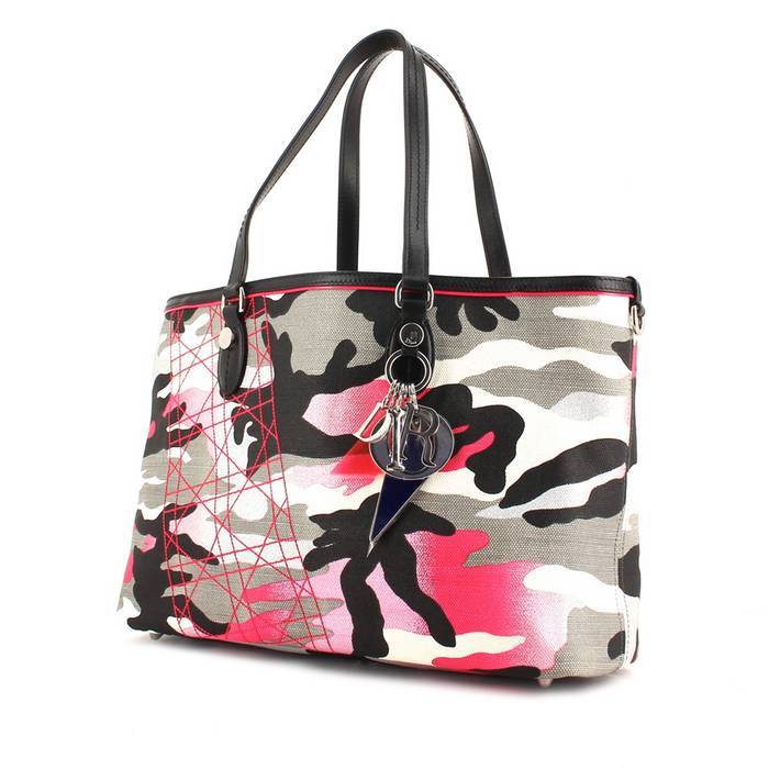 Bolso Cabás Dior Anselme Reyle en lona negra , rosa blanca y gris y cuero negro Ref Collector Square: 32 48 26