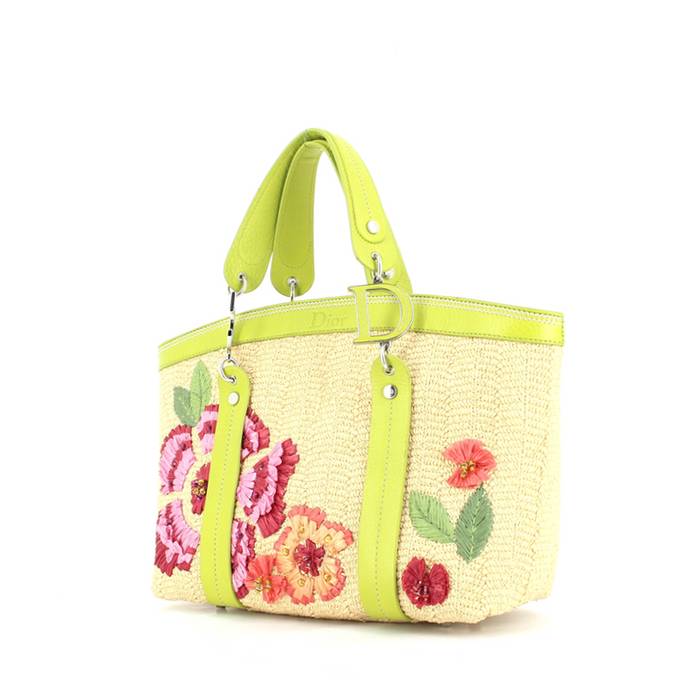 Bolso Cabás Dior en mimbre beige y cuero verde anís Ref Collector Square: 30 12 87