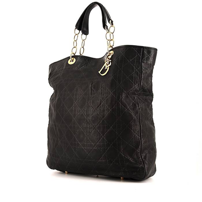 Práctico bolso de mano Dior Dior Soft modelo grande de cuero negro cannage, adorno en metal dorado, doble asa de cuero negro y metal plateado para llevar en la mano o al hombro.