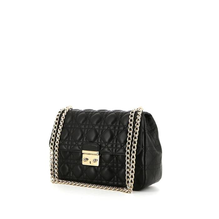 Elegante bolso para llevar al hombro o en la mano Dior Miss Dior de cuero acolchado negro cannage, adorno en metal plateado, una asa en cadena de metal plateado para llevar al hombro o cruzado.