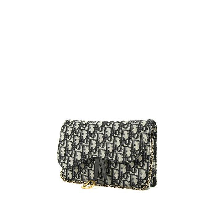 Bonito y original bolsito de mano Dior Saddle de lona Monogram y de cuero azul, adorno en metal dorado, bandolera de metal dorado para llevar en la mano o cruzado.