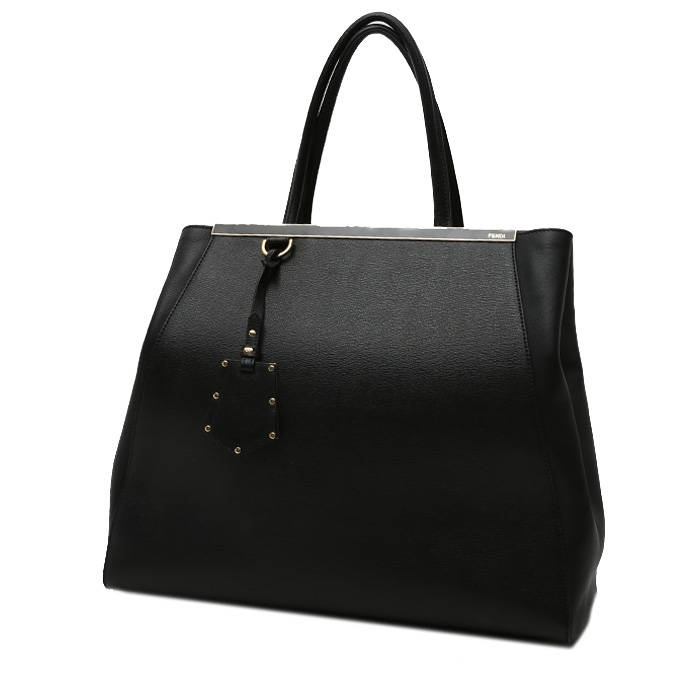 Encantador bolso de mano Fendi 2 Jours de cuero negro, adorno en metal dorado, doble asa de cuero negro para llevar en la mano.