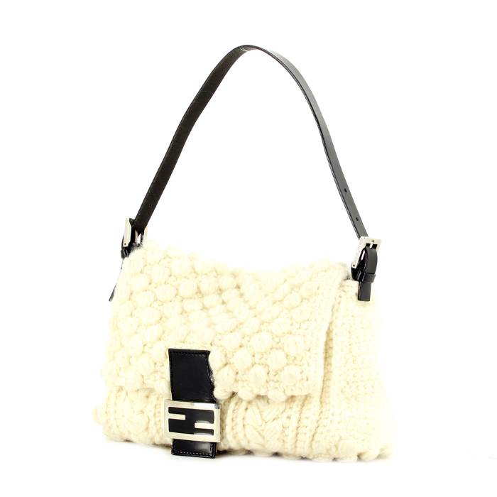 Bolso de mano Fendi Big Mama en lana color crema y cuero negro Ref Collector Square: 26 22 10