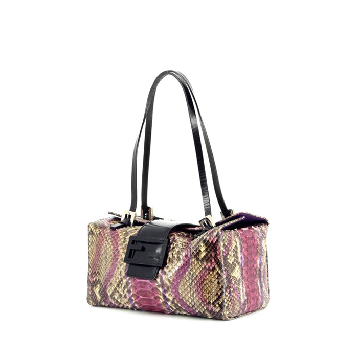 Bolso de mano Fendi en piel de pitón violeta y beige y charol negro Ref Collector Square: 26 21 96
