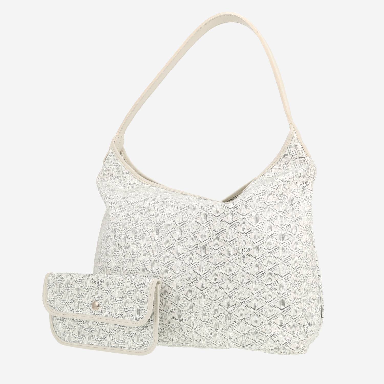 Magnífico bolso de mano Goyard Hobo Bohème de tela Goyardine blanco y cuero blanco, adorno en metal plateado, una asa de cuero blanco para llevar en la mano o al hombro.