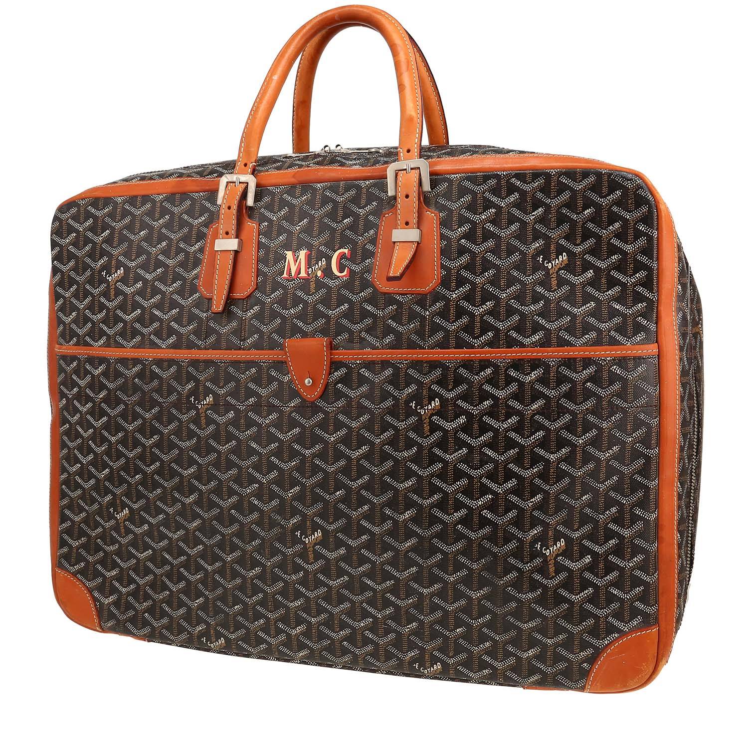 Maleta Goyard en tela Goyardine negra y cuero marrón Ref Collector Square: 41 73 66