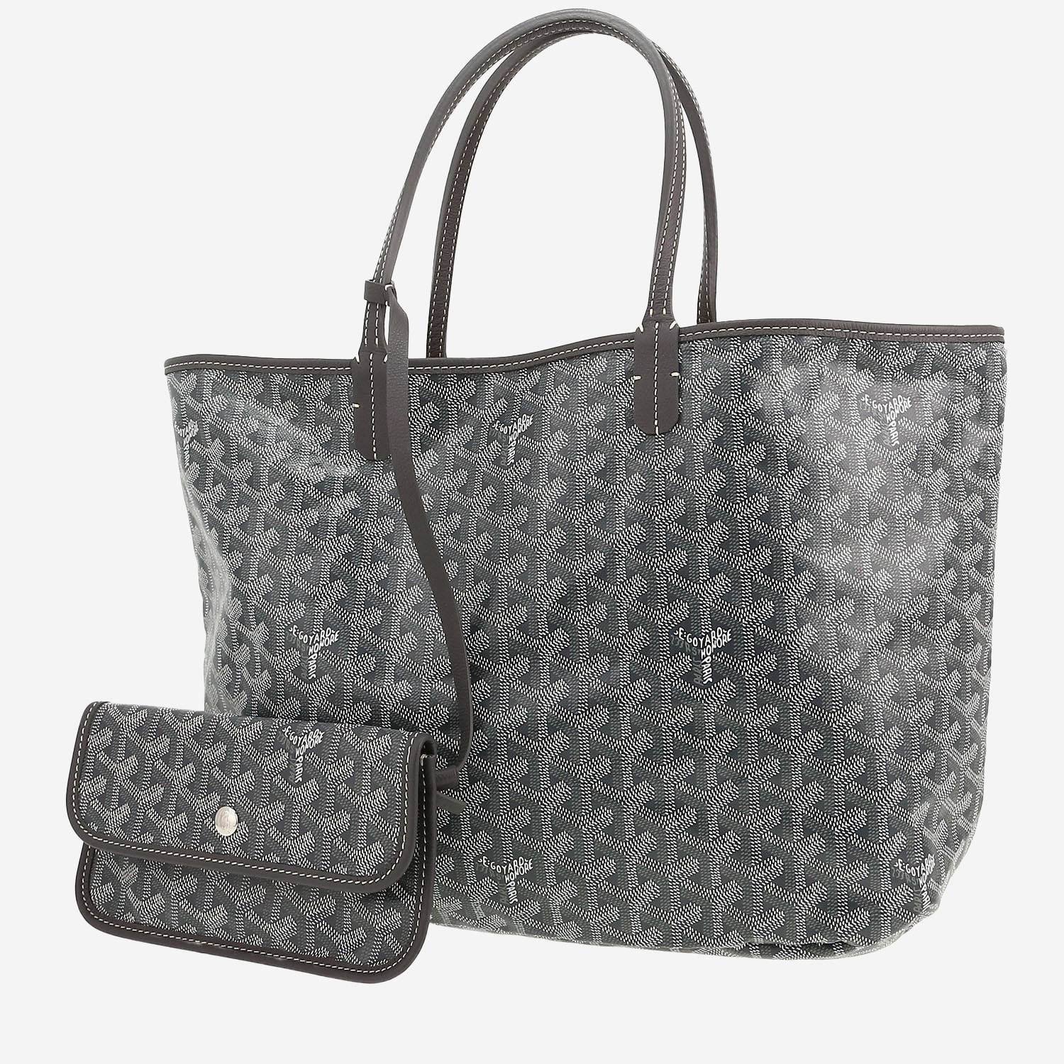 Magnífico bolso Cabás Goyard Saint-Louis de tela Goyardine gris y cuero gris, adorno en metal plateado, doble asa de cuero gris para llevar en la mano o al hombro.