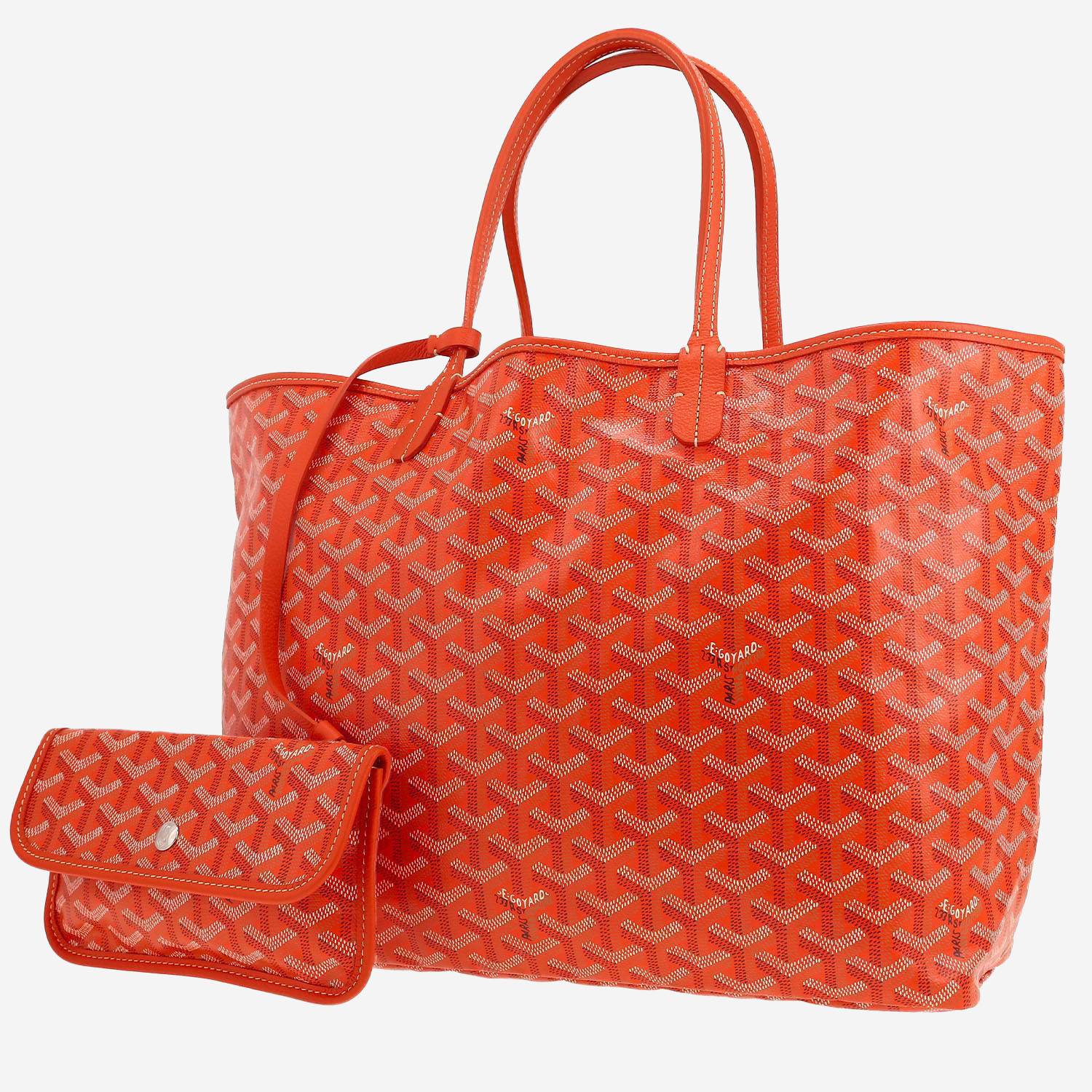Magnífico bolso Cabás Goyard Saint-Louis de tela Goyardine naranja y cuero naranja, adorno en metal plateado, doble asa de cuero naranja para llevar en la mano o al hombro.