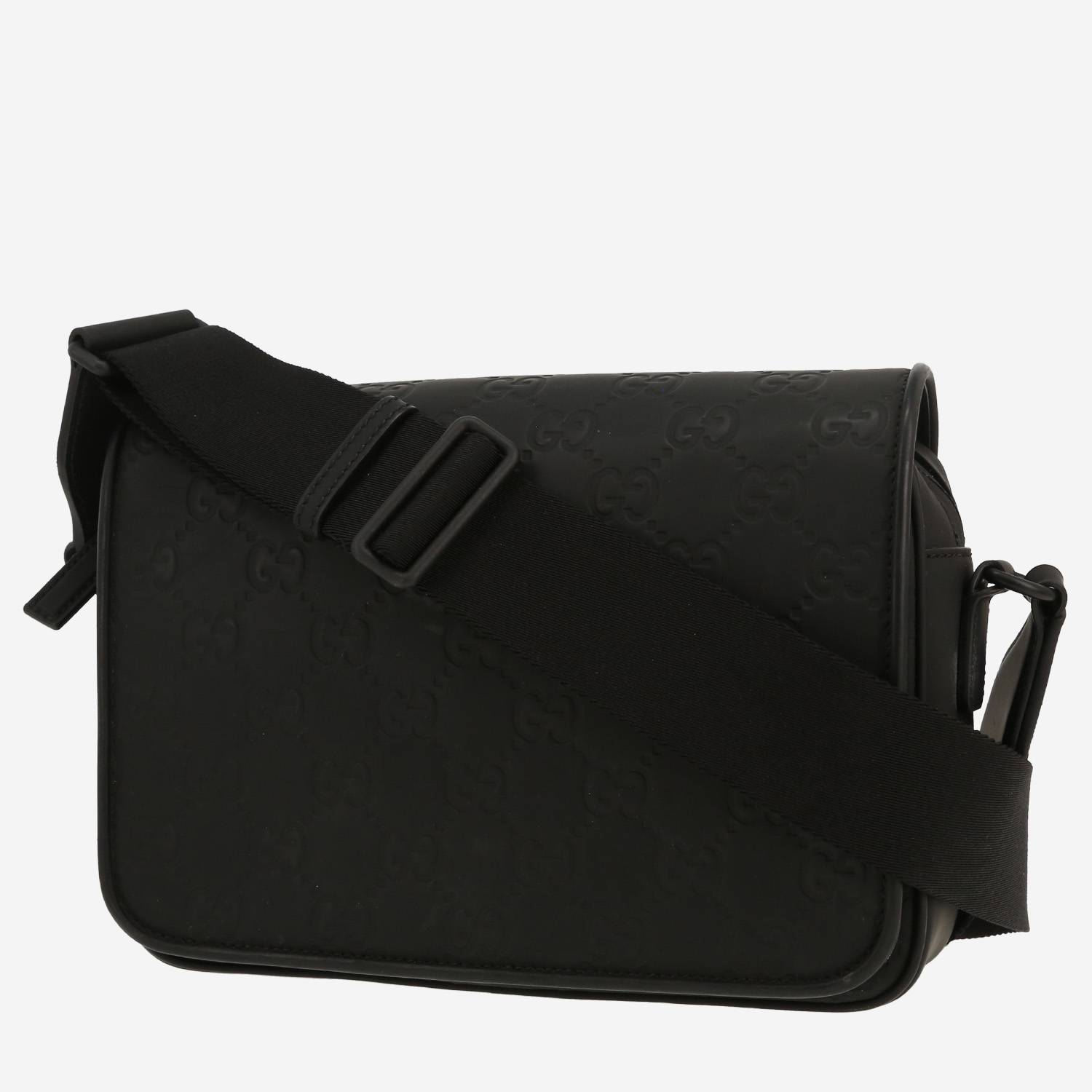 Intemporal bolso bandolera Gucci de plástico negro, adorno en metal negro, una bandolera ajustable de lona negra para llevar al hombro o cruzado.