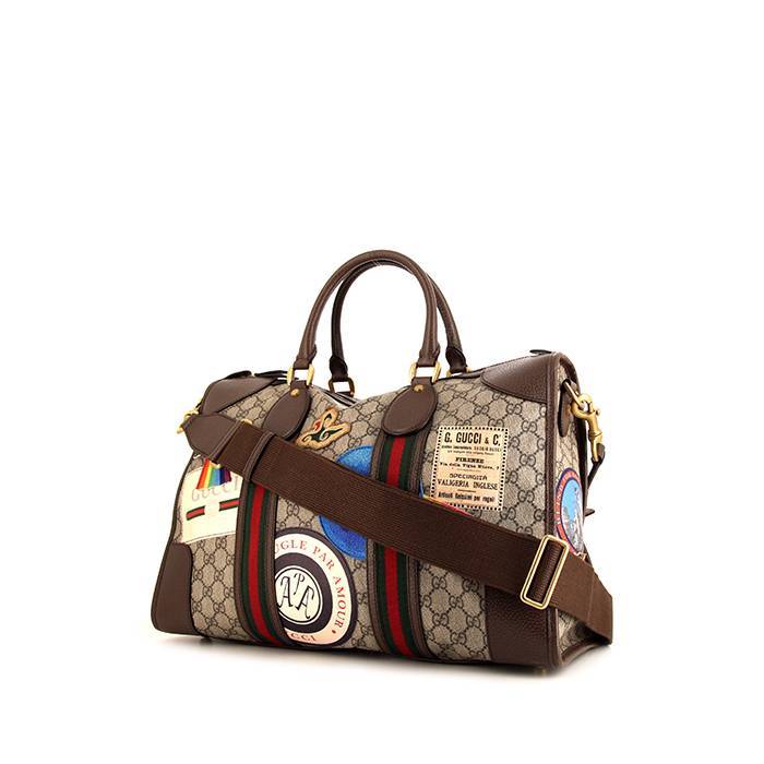 Bolso de fin de semana Gucci en lona Monogram gris y cuero marrón Ref Collector Square: 37 07 40