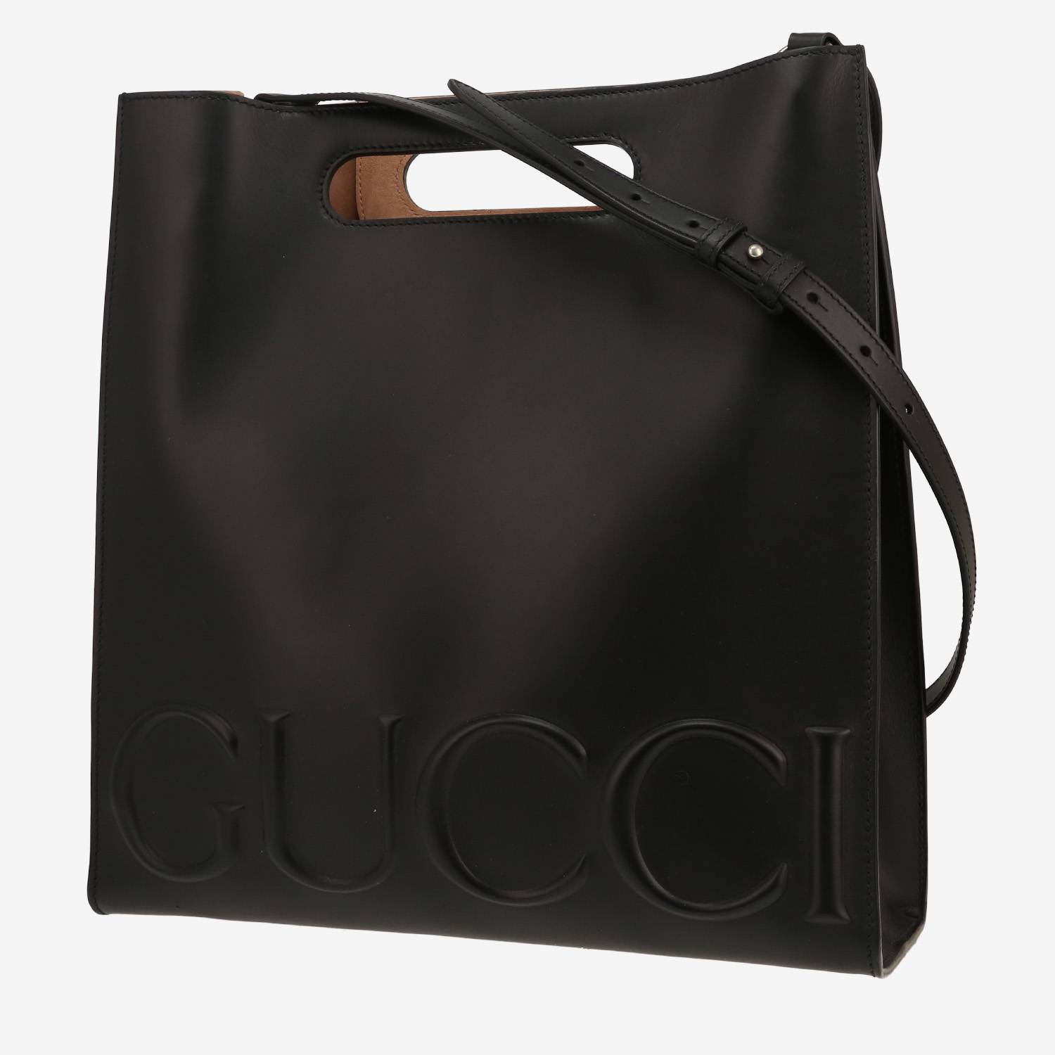 Intemporal bolso de mano Gucci de cuero negro, doble asa de cuero negro, una bandolera ajustable de cuero negro para llevar en la mano o al hombro.