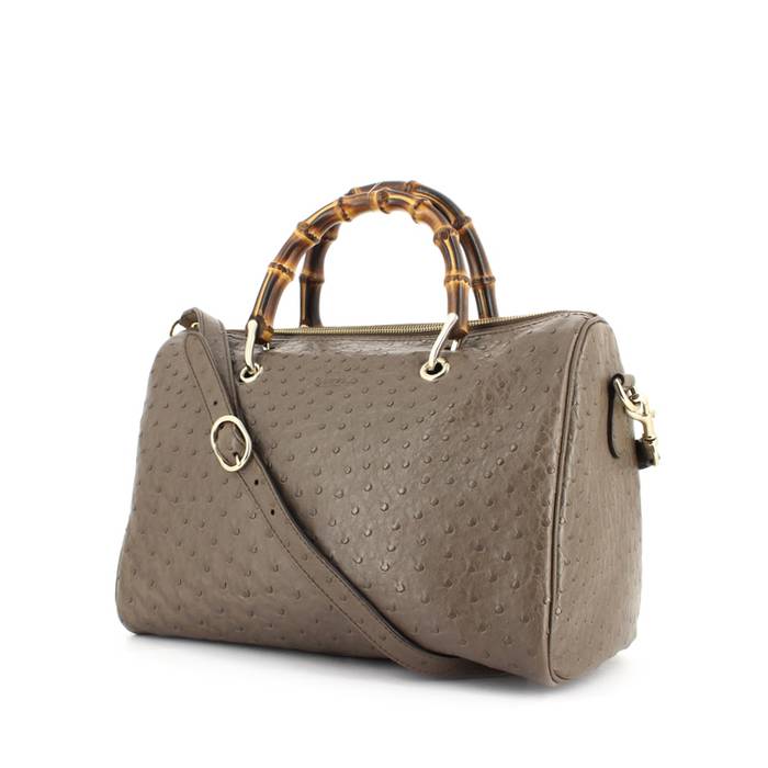 Bolso de mano Gucci en avestruz marrón etoupe Ref Collector Square: 30 70 19