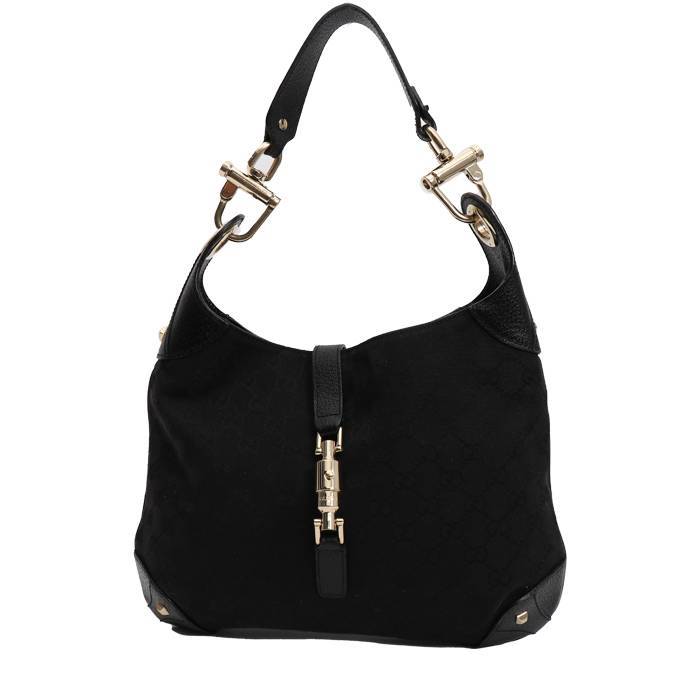 Bolso de mano Gucci Jackie vintage en lona monogram negra y cuero negro Ref Collector Square: 40 17 75