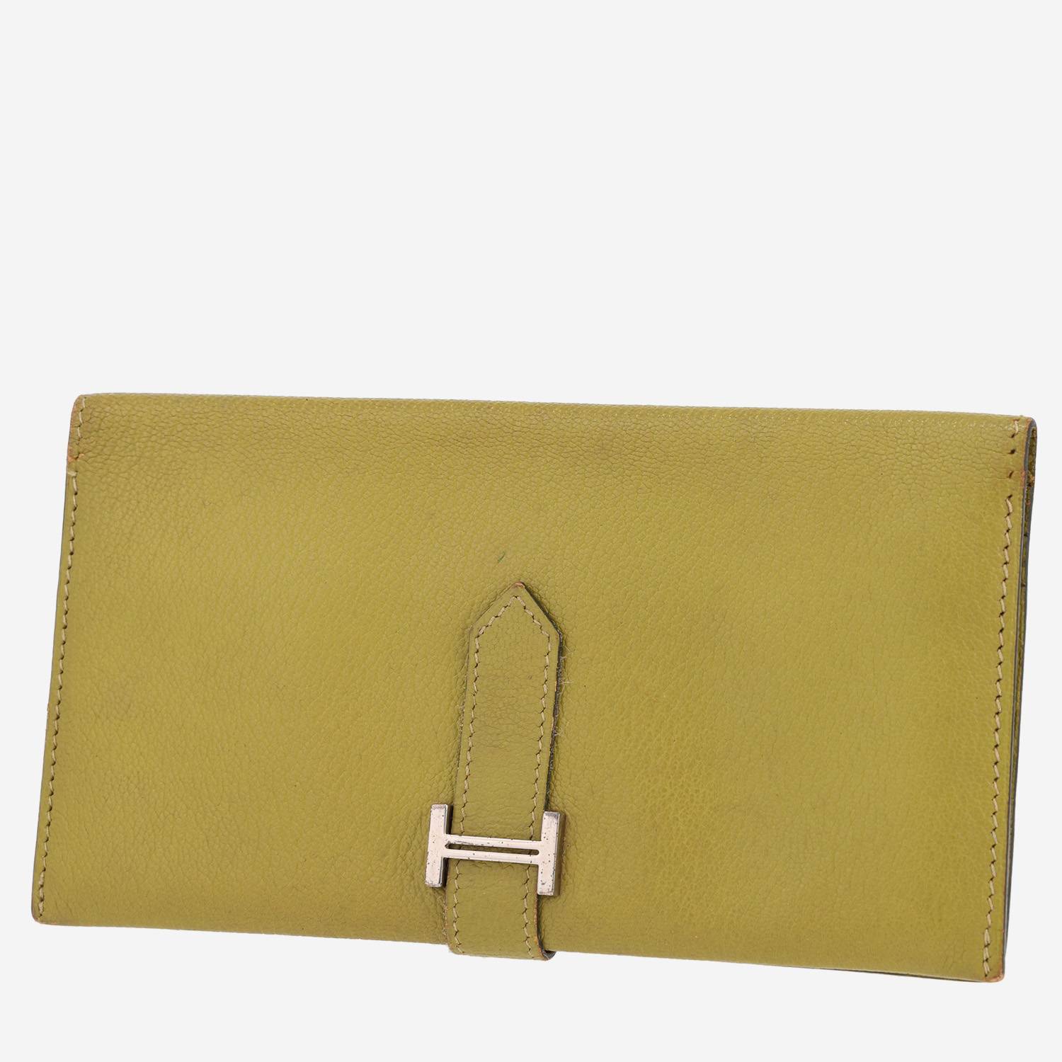 Magnífica billetera Hermès Bearn de cuero Mysore verde anís, adorno en metal plateado paladio.