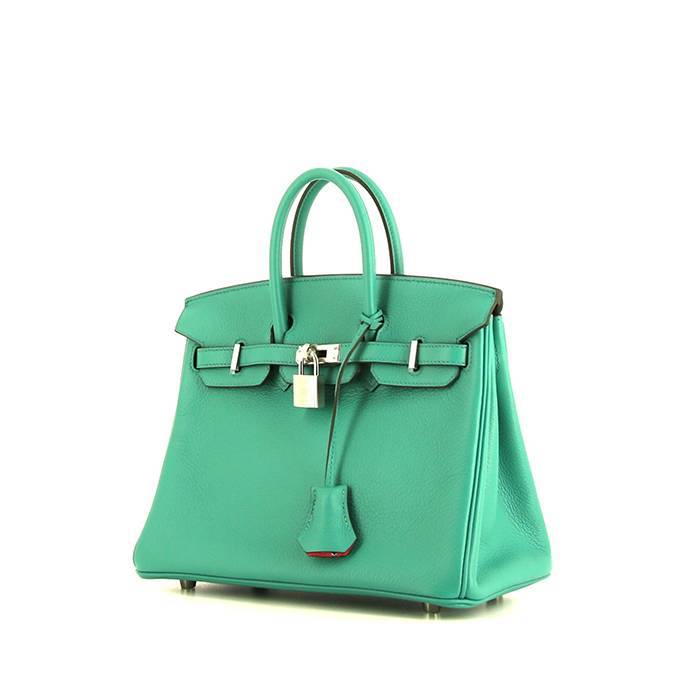 Bolso de mano Hermes Birkin 25 cm en cuero taurillon clémence Vert Veronese Ref Collector Square: 38 45 56