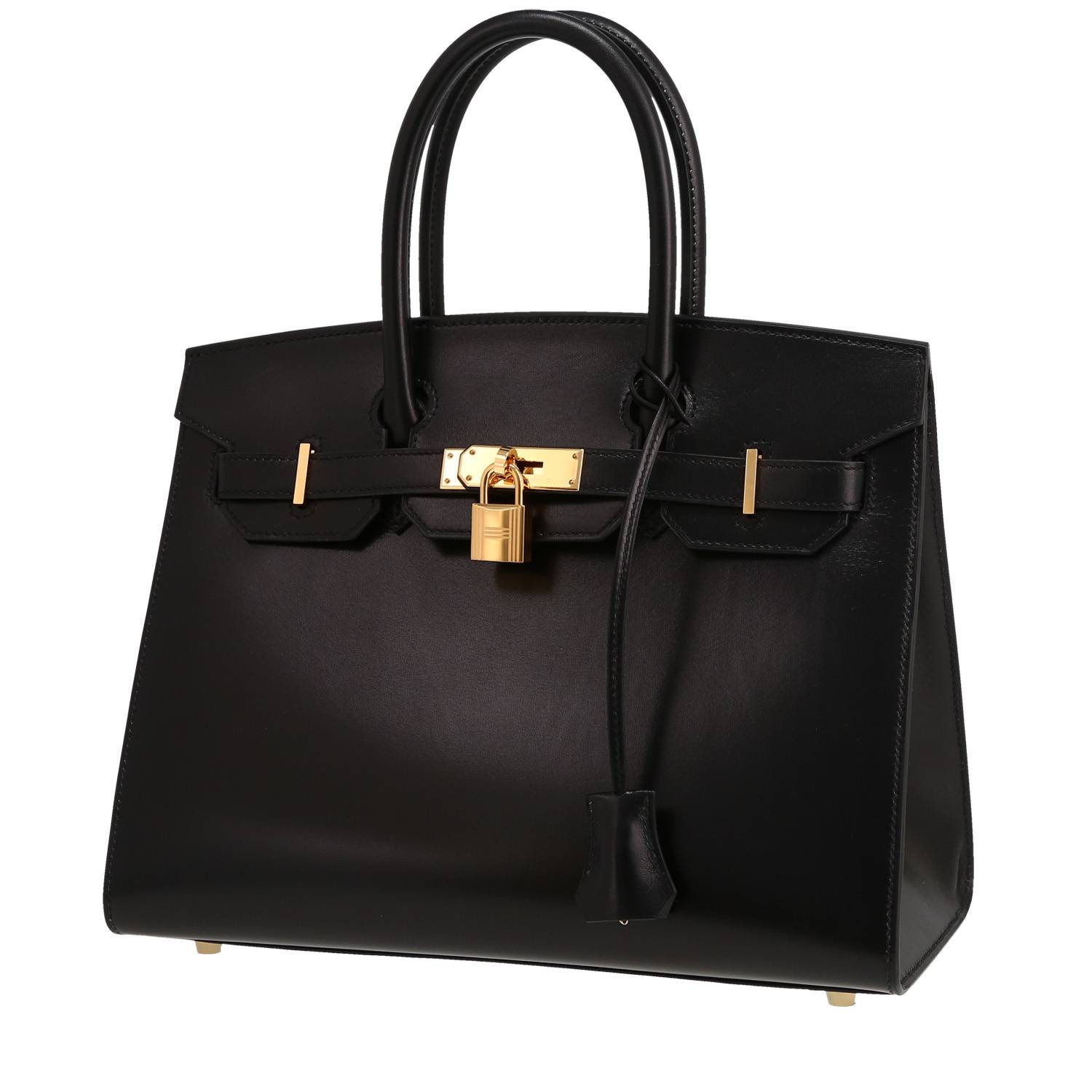 Excepcional bolso de mano Hermès Birkin 30 cm de cuero box negro, adorno en metal dorado, doble asa de cuero negro para llevar en la mano.