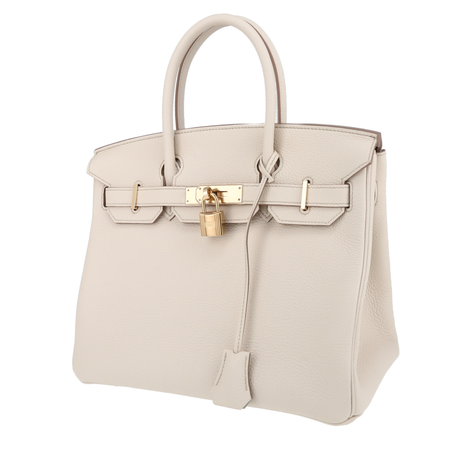Codiciado bolso de mano Hermès Birkin 30 cm de cuero togo Craie, adorno en metal dorado, doble asa de cuero Craie para llevar en la mano.