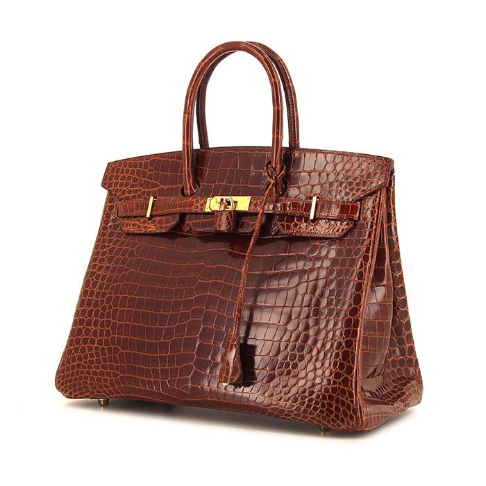 Bolso de mano Hermes Birkin 35 cm en cocodrilo porosus marrón Ref Collector Square: 36 08 10