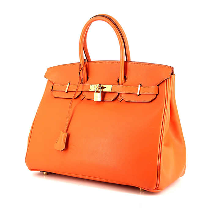 Bolso de mano Hermes Birkin 35 cm en cuero swift naranja Ref Collector Square: 35 16 73