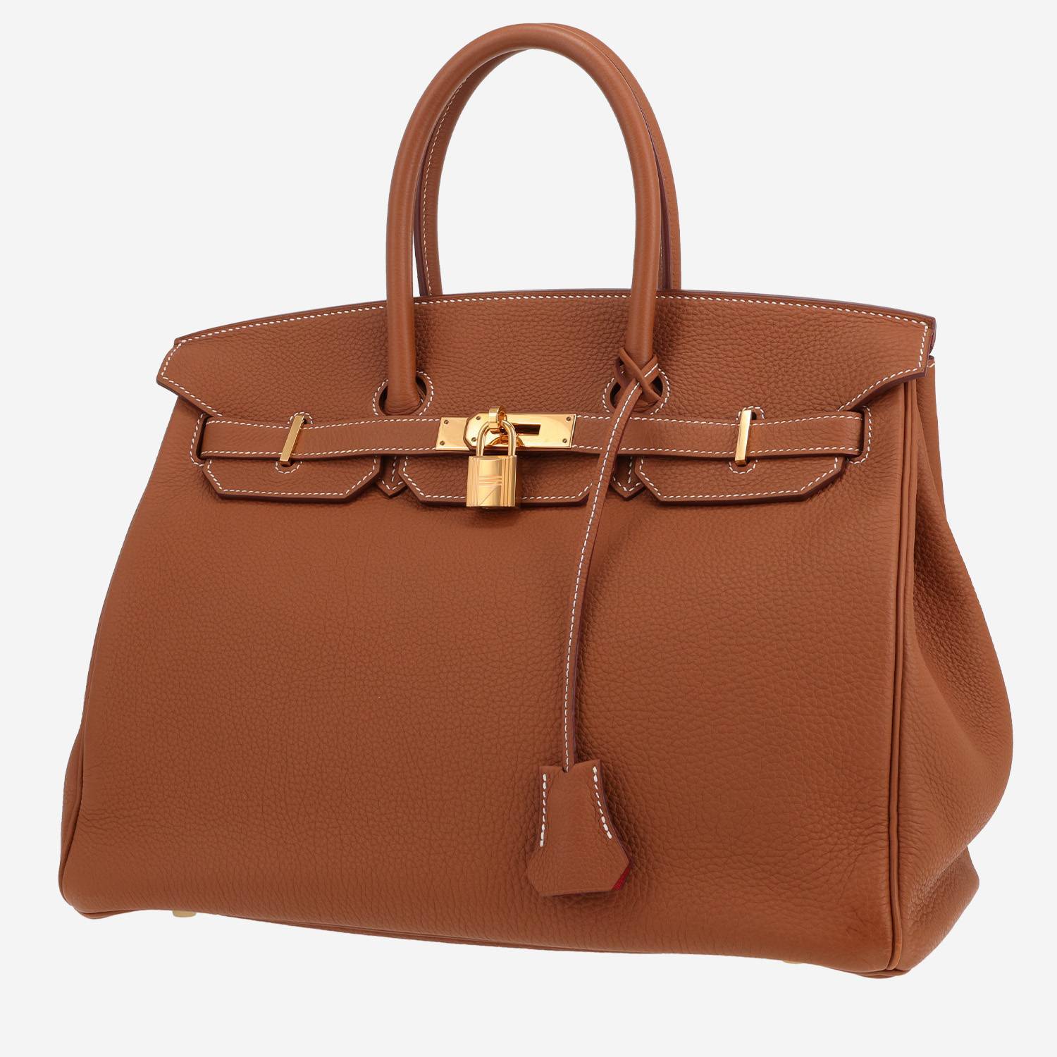 Magnífico bolso de mano Hermès Birkin 35 cm de cuero togo color oro, adorno en metal dorado, doble asa de cuero color oro para llevar en la mano.