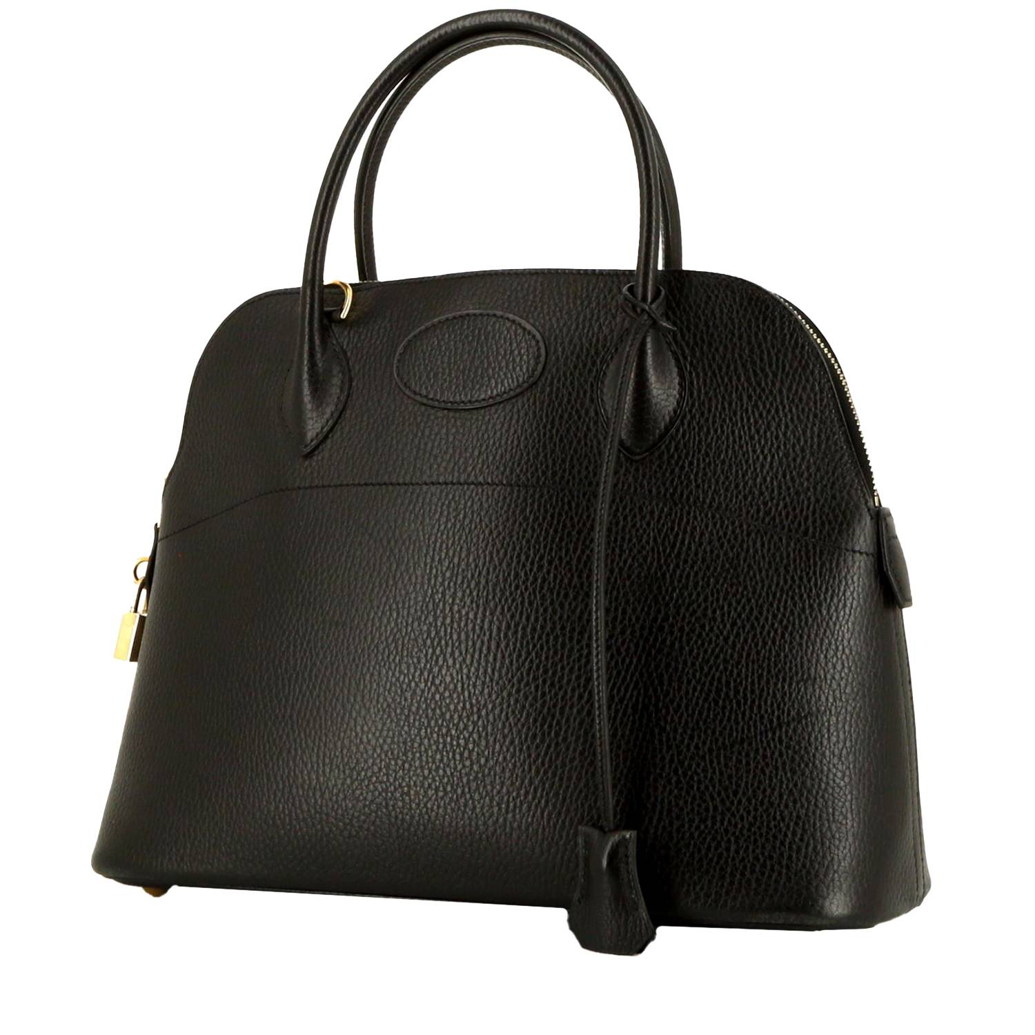 Inconfundible bolso de mano Hermès Bolide 31 cm de cuero Fjord negro, adorno en metal dorado, doble asa de cuero Fjord negro, una asa sencilla extraíble de cuero Fjord negro.