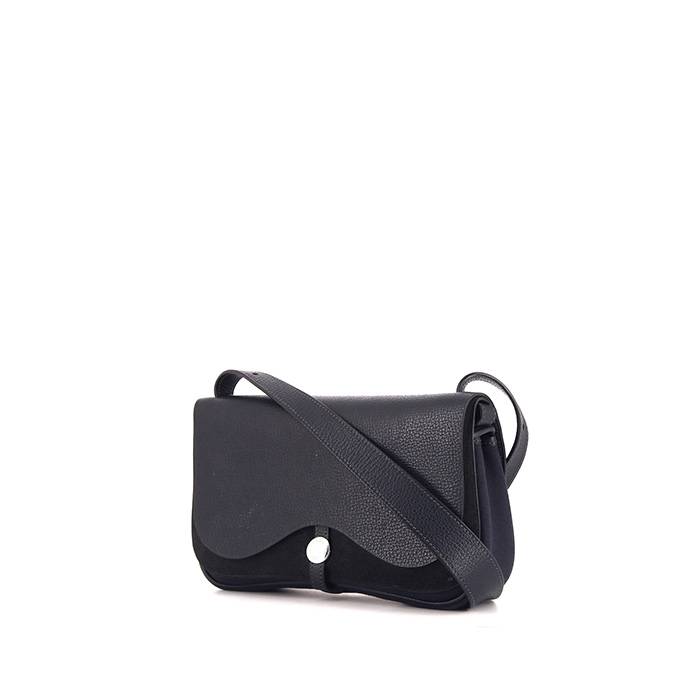 Elegante bolso para llevar al hombro o en la mano Hermes Colorado de cuero granulado azul y de lona azul, adorno en metal paladio, una asa ajustable de cuero granulado azul para llevar en la mano o al hombro.