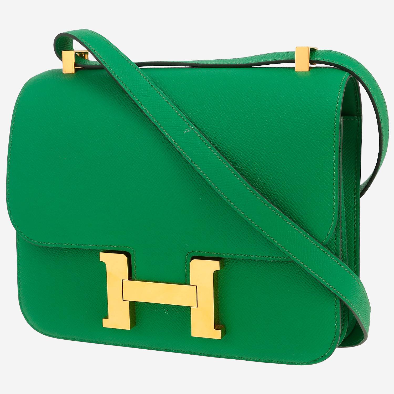 Elegante bolso de mano Hermès Constance de cuero epsom Vert Cactus, adorno en metal dorado, una asa ajustable de cuero Vert Cactus para llevar al hombro o cruzado.