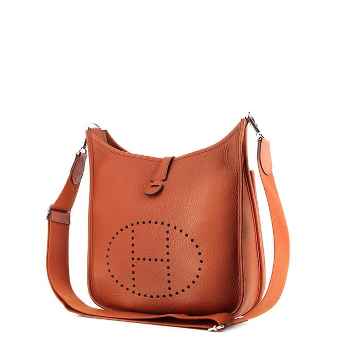 Bolso bandolera Hermes Evelyne modelo mediano en cuero taurillon clémence terre battue Ref Collector Square: 35 31 96
