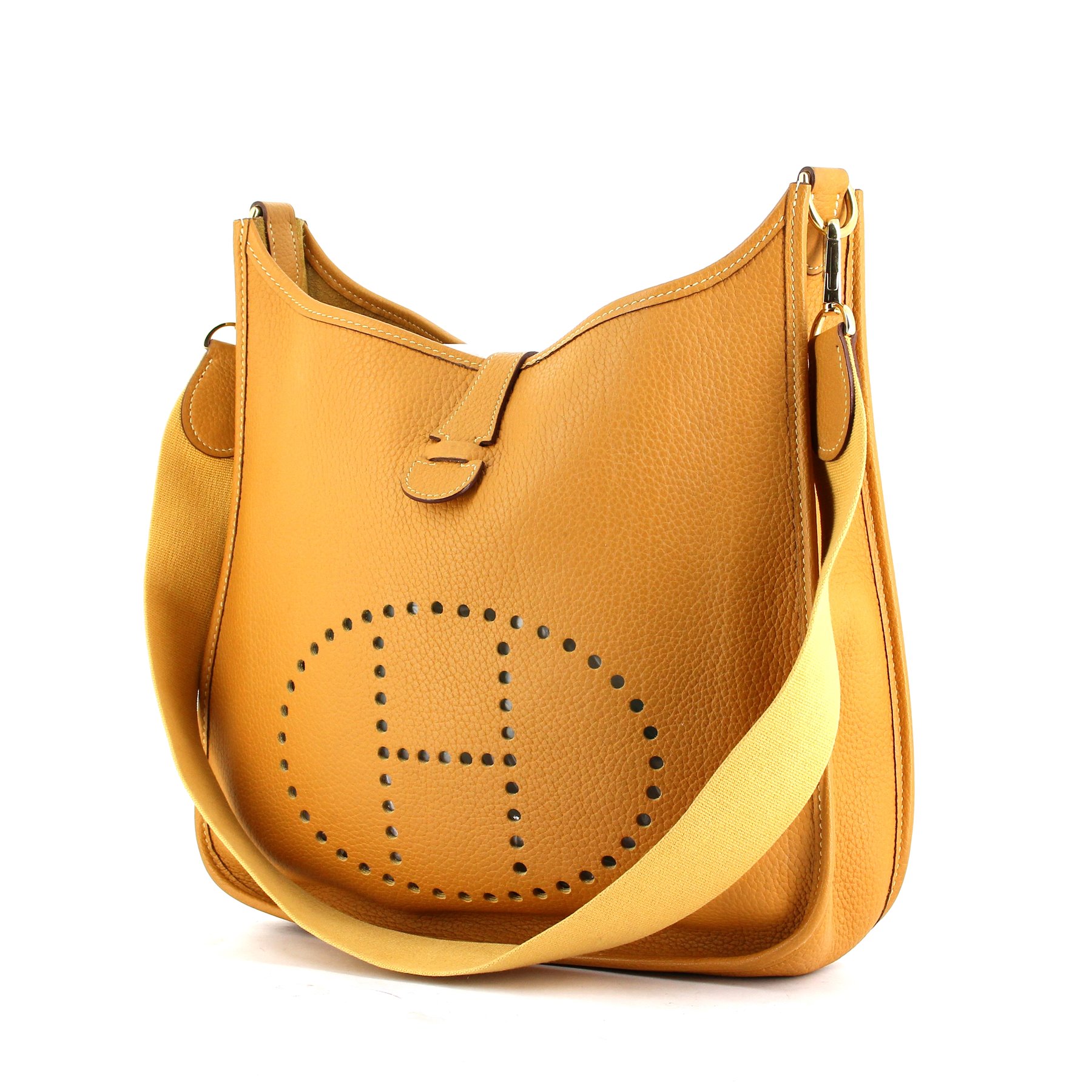 Bolso zurrón Hermes Evelyne modelo grande en cuero taurillon clémence color oro Ref Collector Square: 32 39 05
