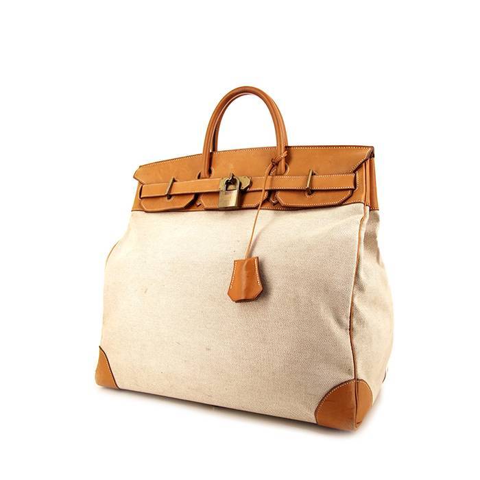 Bolsa de viaje Hermes Haut à Courroies - Travel Bag grande en lona beige y cuero color oro Ref Collector Square: 37 40 24