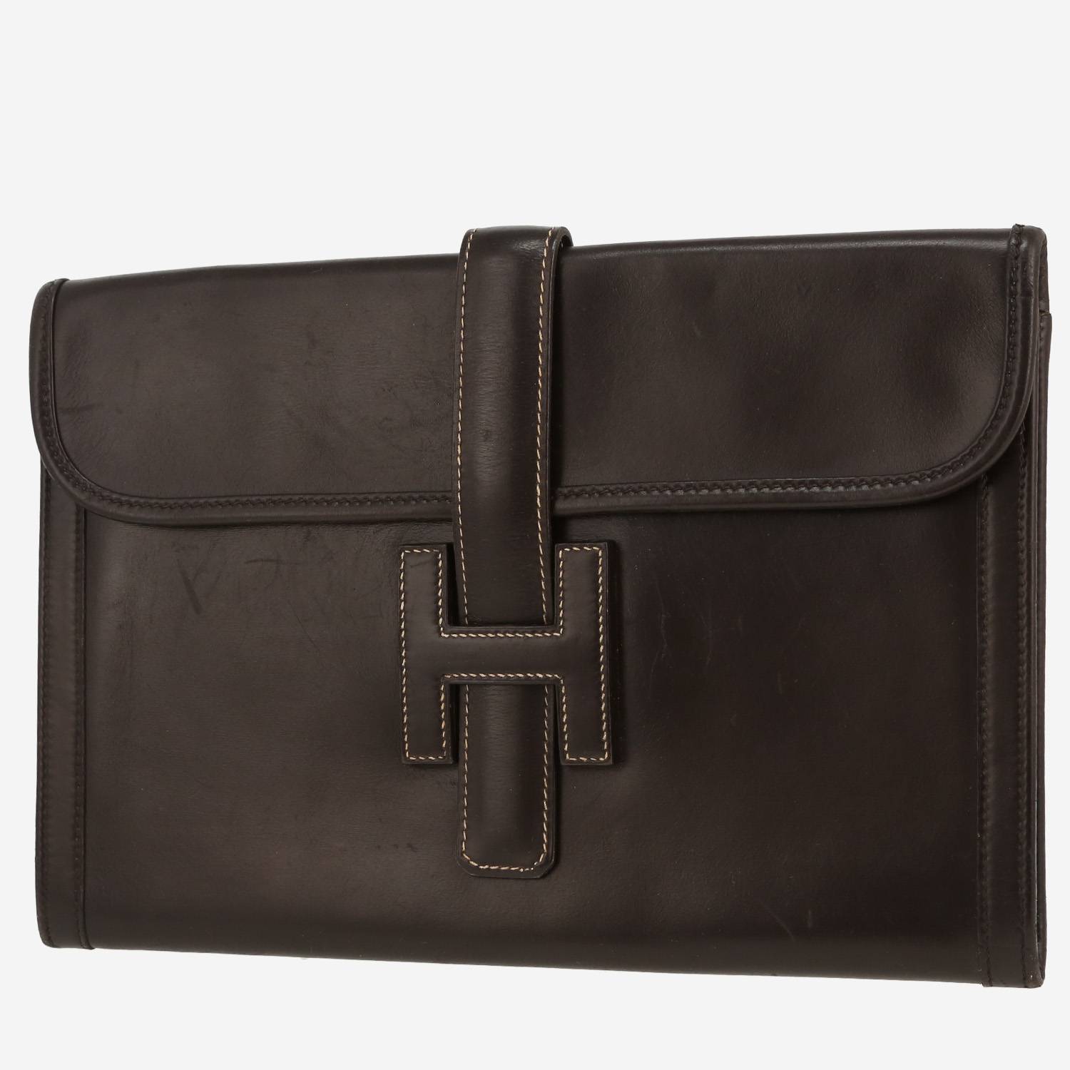Magnífico bolsito de mano Hermès Jige de cuero box marrón.