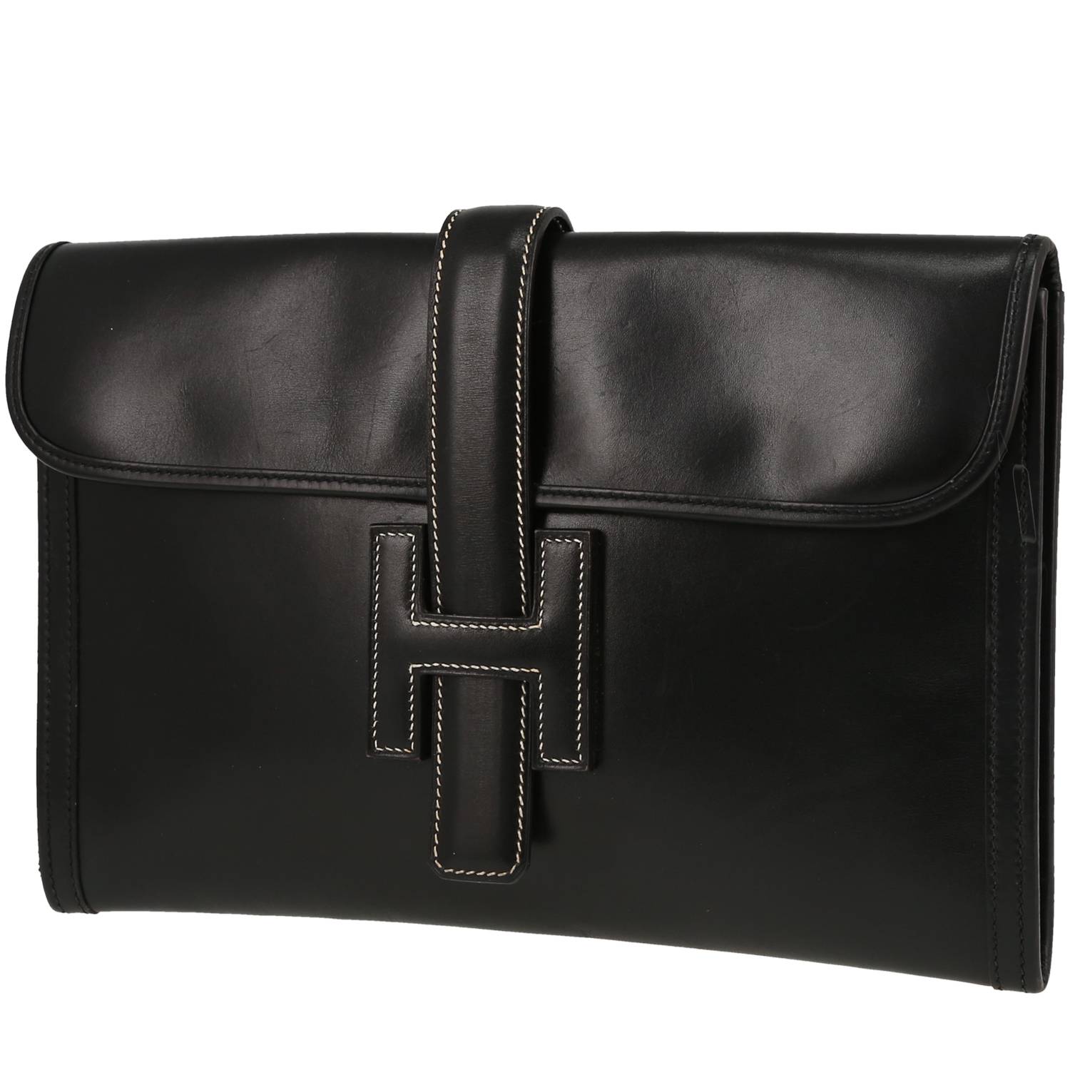 Magnífico bolsito de mano Hermès Jige de cuero box negro.