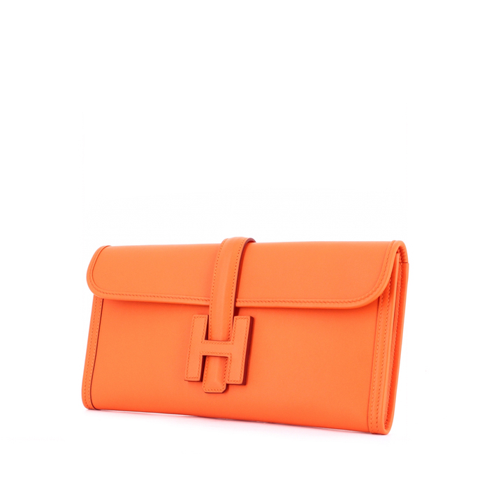 Bolsito de mano Hermes Jige modelo grande en cuero swift naranja Ref Collector Square: 32 13 41