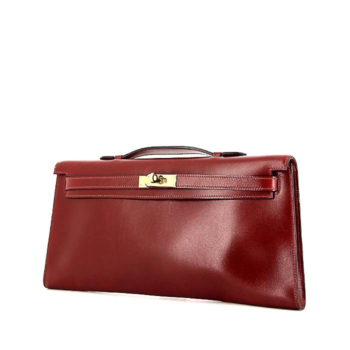Bolsito de mano Hermès Kelly - Clutch en cuero box color burdeos Ref Collector Square: 34 05 45