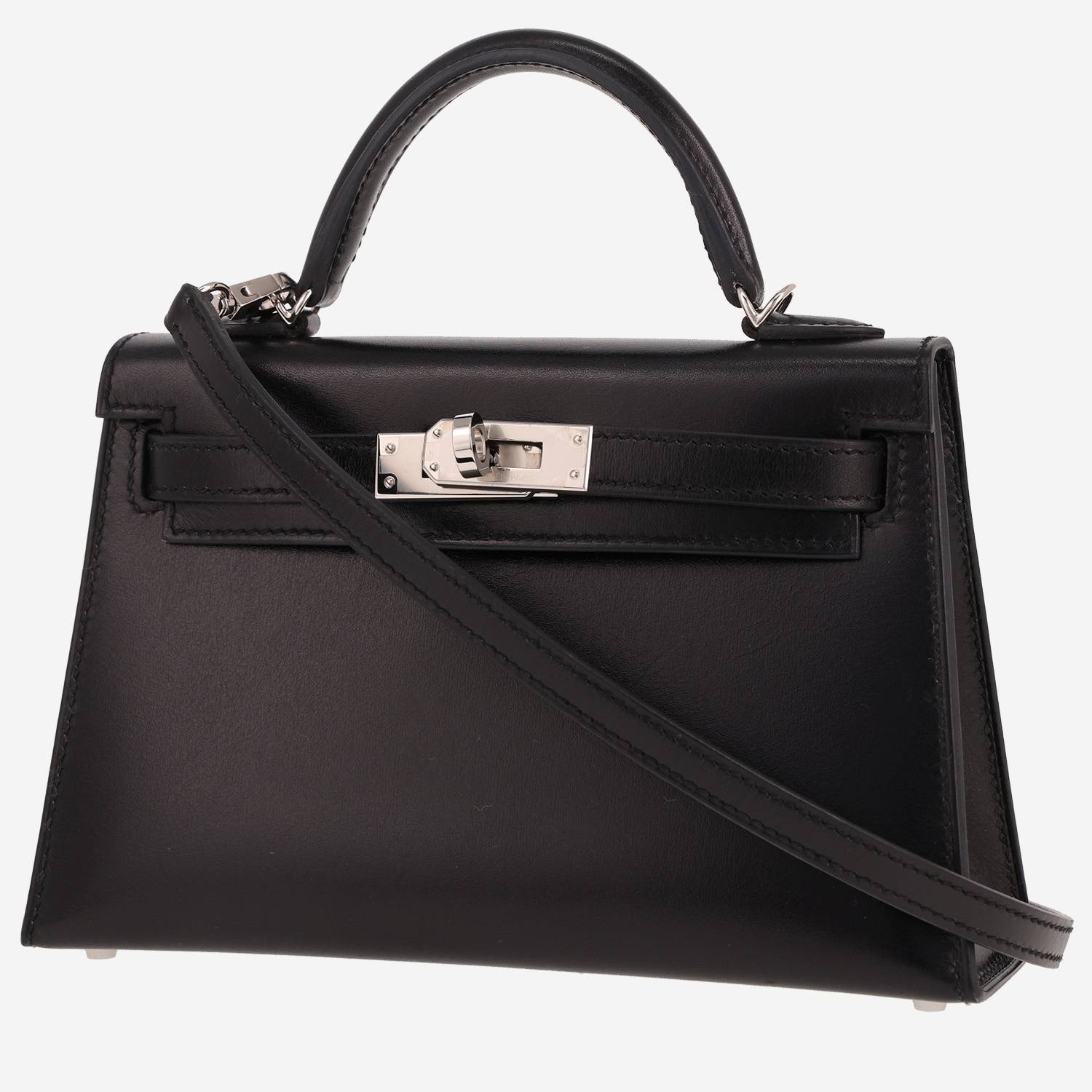 Magnífico bolso de mano Hermès Kelly 20 cm de cuero box negro, adorno en metal plateado paladio, asa de cuero negro, una asa extraíble de cuero negro para llevar en la mano o colgado al hombro o cruzado.