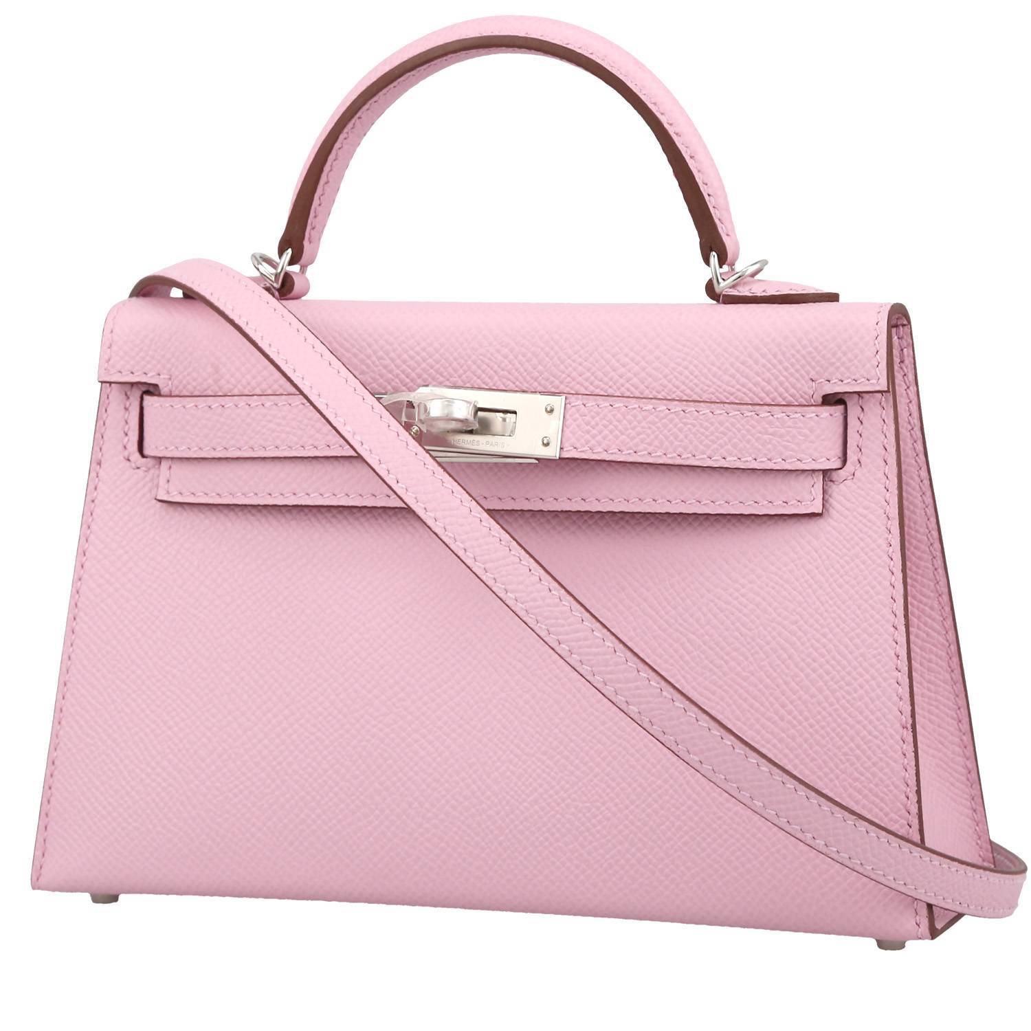 Magnífico bolso de mano Hermès Kelly 20 cm de cuero epsom Mauve Sylvestre, adorno en metal plateado paladio, asa de cuero Mauve Sylvestre, una asa extraíble de cuero Mauve Sylvestre para llevar en la mano o colgado al hombro o cruzado.