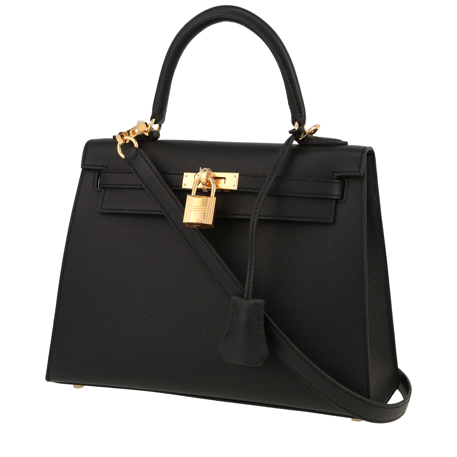 Bolso de mano Hermès Kelly 25 cm en cuero epsom negro Ref Collector Square: 41 09 17