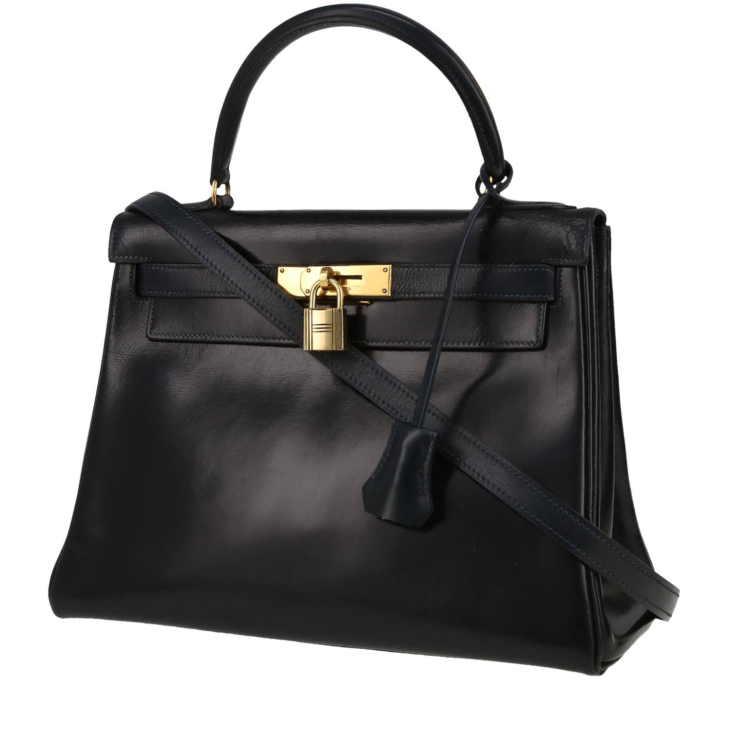 Bolso de mano Hermès Kelly 28 cm en cuero box azul marino Ref Collector Square: 40 59 54