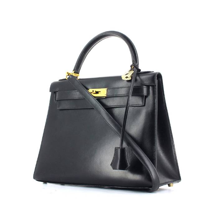 Bolso de mano Hermes Kelly 28 cm en cuero box negro Ref Collector Square: 31 91 16