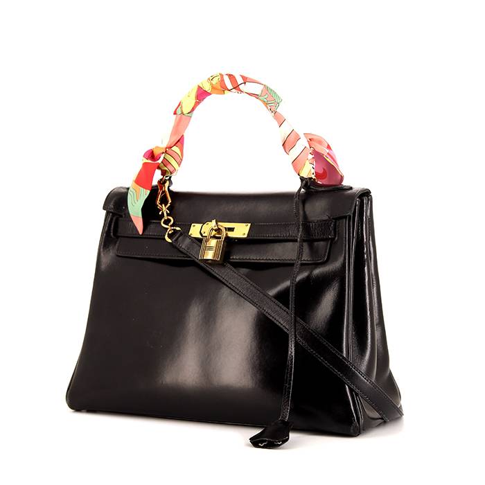 Bolso de mano Hermes Kelly 28 cm en cuero box negro Ref Collector Square: 35 72 56