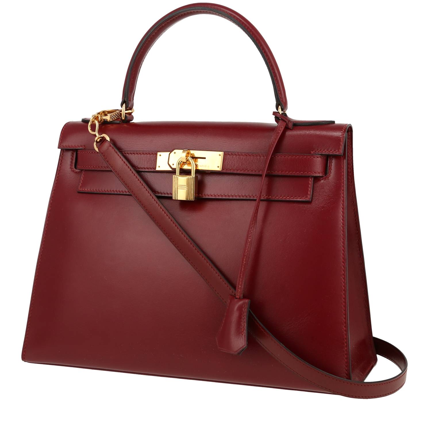 Clásico bolso de mano Hermès Kelly 28 cm de cuero box rojo H, adorno en metal dorado, asa sencilla de cuero rojo H, mango sin signo extraíble de cuero rojo H para llevar en la mano o al hombro.
