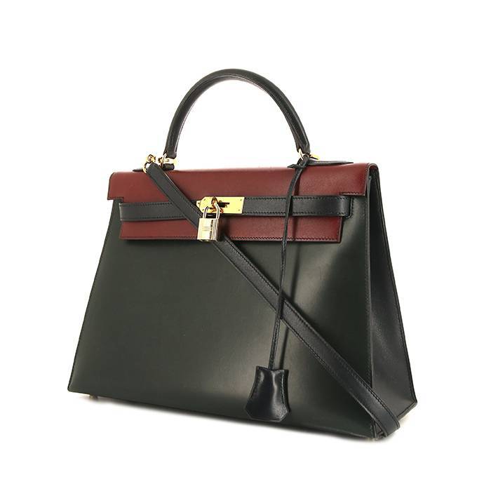 Bolso de mano Hermes Kelly 32 cm, 1995, en cuero box tricolor rojo, azul y verde Ref Collector Square: 36 14 43