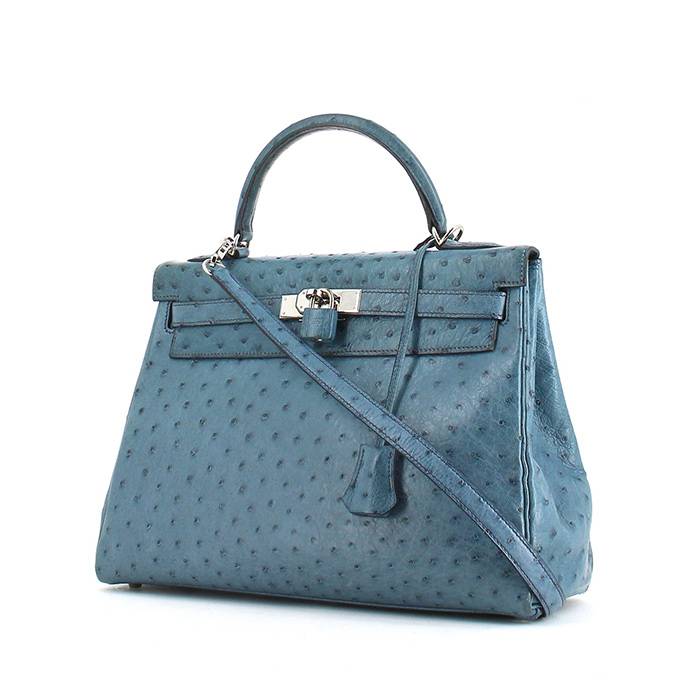 Bolso de mano Hermes Kelly 32 cm en avestruz azul Ref Collector Square: 32 88 63