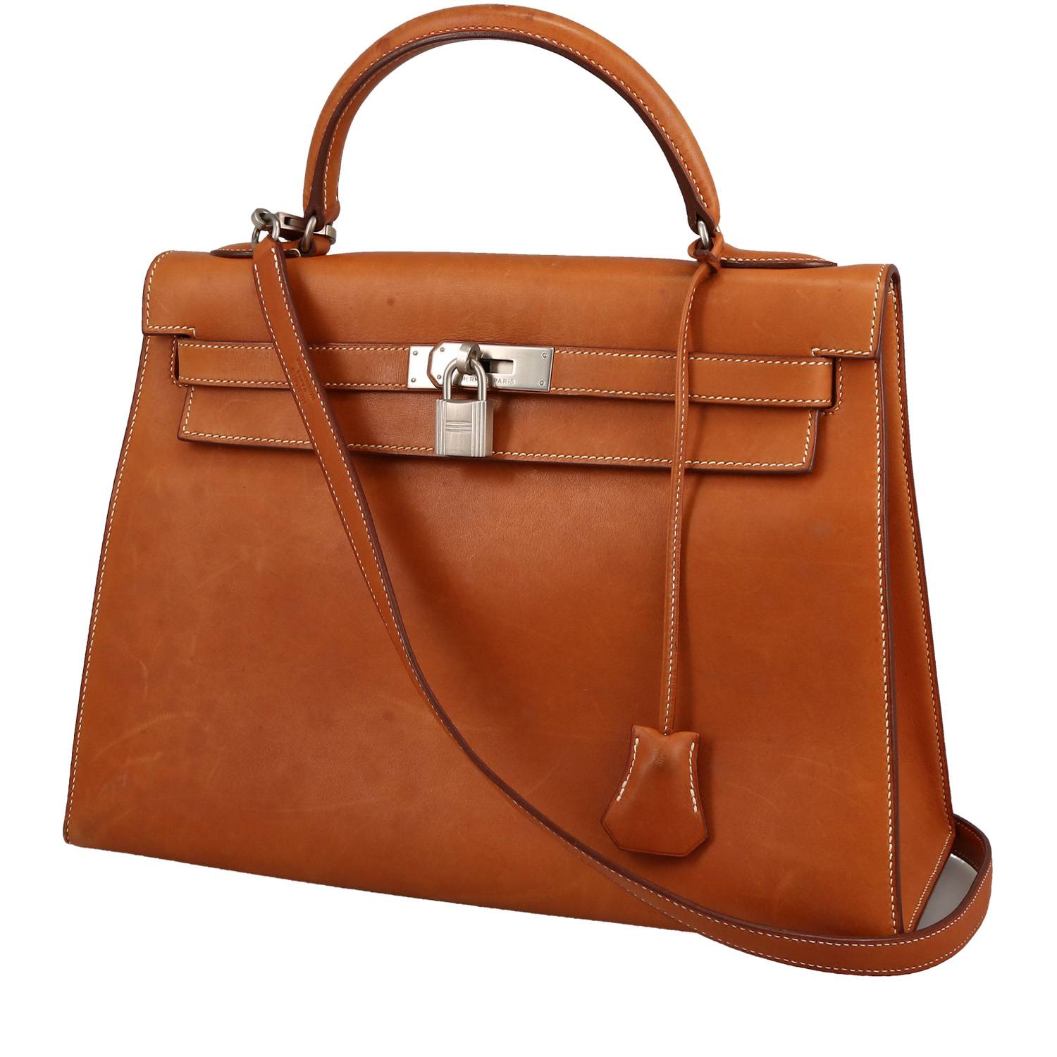 Magnífico bolso de mano Hermès Kelly 32 cm de cuero Barenia color oro, adorno en metal cepillado, asa sencilla de cuero color oro, bandolera extraíble de cuero color oro para llevar en la mano o al hombro.