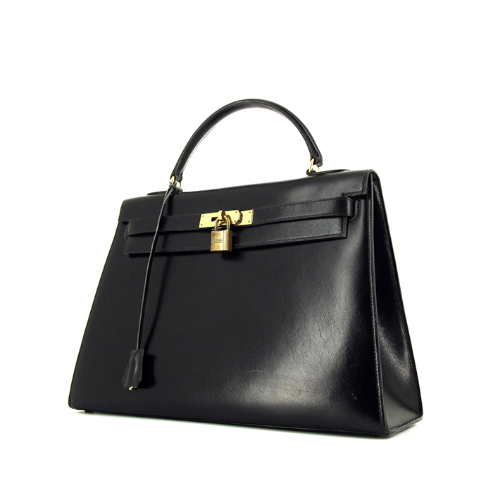 Bolso de mano Hermes Kelly 32 cm en cuero box negro Ref Collector Square: 29 74 14